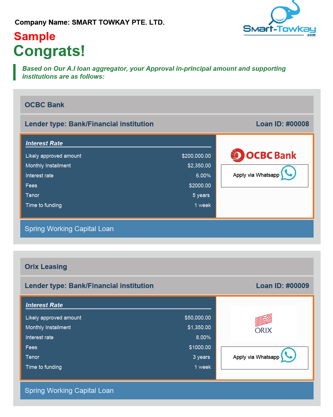 You are a minute away from your personalized lending report curated based on your company financial standing.